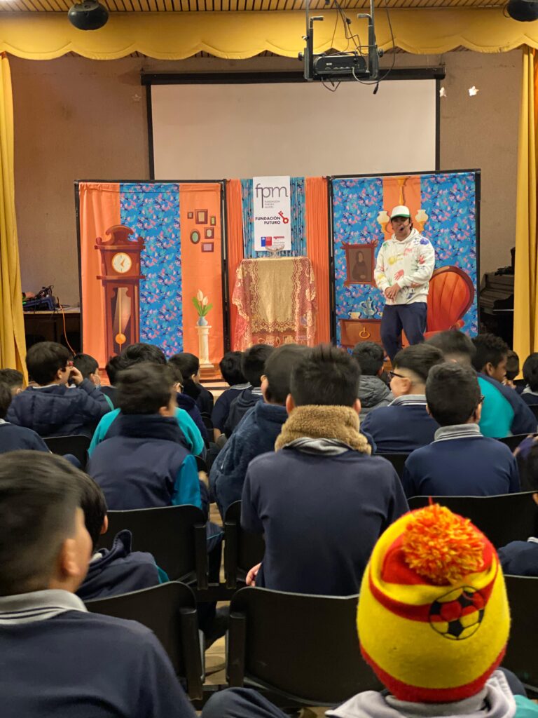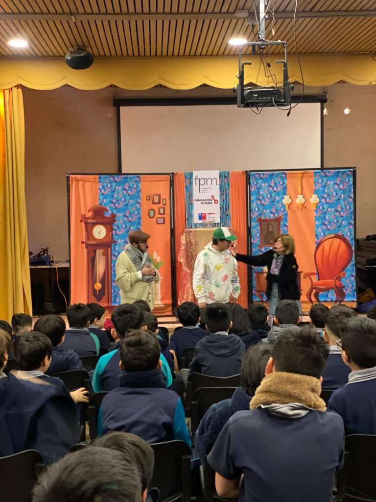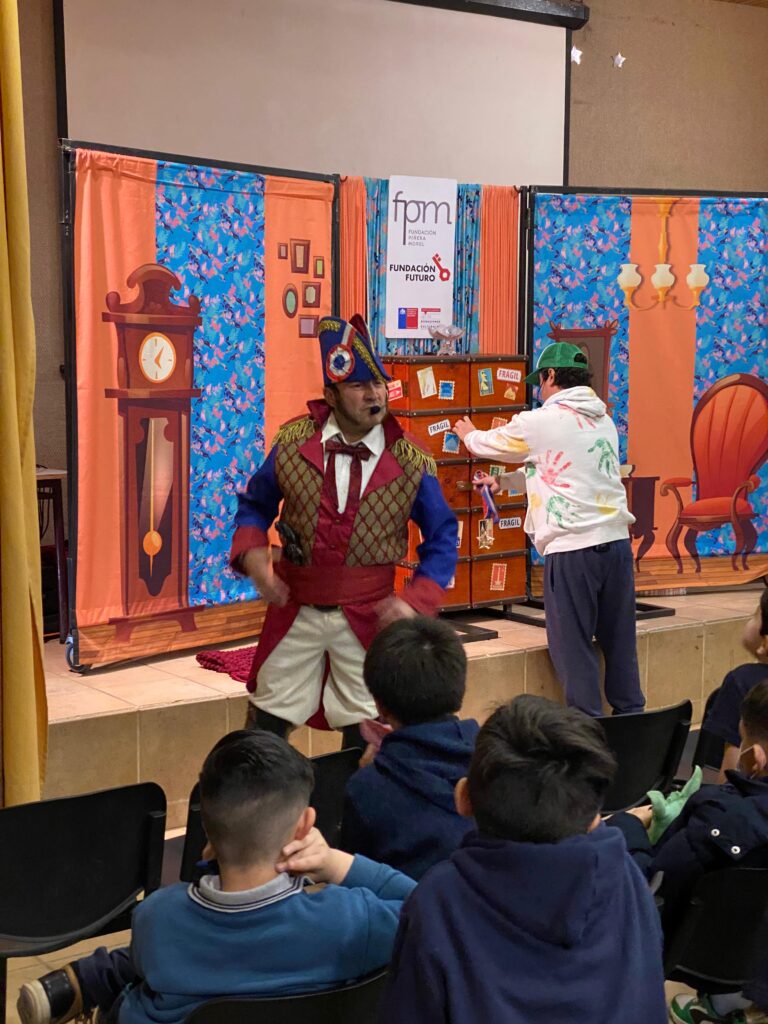 El teatro se apodera de nuestro auditorio con una educativa obra, donde nuestros estudiantes de 2° y 3° básico tuvieron la oportunidad de disfrutar de la presentación de la obra infantil “El Baúl Mágico de la Historia de Chile”, una propuesta educativa presentada por la Fundación Futuro y FPM.